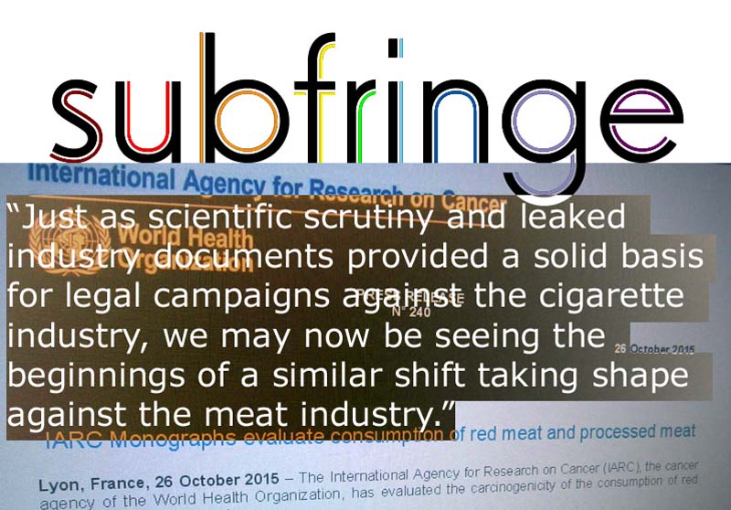 Subfringe staff Thurs, Oct 29, 2015 02:15EST Subfringe looks at the significance of the recent World Health Organization warning linking meat consumption and cancer and finds a promising parallel in the decades long battle against big tobacco. When the World Health Organization (WHO) announced this week that processed meats would be added to the list of known carcinogens, reactions were as oddly apathetic as the news was significant. On social media, comments on the order of, "Just living is dangerous, whatever you do," mimicked the halting denial of smokers two decades ago when evidence linking tobacco and cancer began to be widely acknowledged by public bodies and received affirmation in the first successful lawsuits against cigarette makers - something of which family and friends of smokers had long been without doubt. Likewise, any vegetarian can relate stories of a friend who, after years on a meat free diet, began to develop serious health problems within months of a return to an omnivorous diet. For many vegetarians, as for relatives of smokers in decades past, the official confirmation that meat consumption leads to cancer is a non-event, even if the potential implications for the general public and for the meat industry may prove to be huge, as we'll see. The Battle Against Big Tobacco It's worth considering how the evidence and challenges against tobacco companies unfolded and spilled into public consciousness over several decades. In 1950, American scientists Ernst Wyndner and Evarts Graham noted in a published study that 96% of lung cancer patients were moderate to heavy smokers. In 1954, a lawsuit seeking to hold RJ Reynolds responsible for a fatal case of lung cancer failed. In 1963, an internal Brown&Williamson legal memo notes that, "Nicotine is addictive." By 1964, the Surgeon General issued a report warning of health risks from smoking, and by 1966, warning labels appeared on cigarette packaging. In 1979, the CDC set a target to reduce smoking to below 25% of the general population by 1990 (1). By 1990, the official figure was 25.5%, a remarkable 23% decline over the course of the intervening decade. Coincidentally with the CDC target, or not, in 1992, the US Supreme Court ruled in the case of Cipollone v. Liggett Group, Inc that the warning on cigarette packaging, in place since 1966, did not shield tobacco companies from legal damages. Only two years earlier, damages had been denied in the re-trial of the case of Nathan Horton in Lexington, MS, after it was found the cigarette industry had nonetheless been "irresponsible" in the use of fertilizers and pesticides in tobacco growth, resulting in Mr Horton's fatal case of lung cancer. High profile media stories and libel suits resulted in 1994 from a leak of insider documents, in which the industry was able to silence critics, but not hold off a flurry of states suits seeking to recoup public health costs. In 1996, former smoker Grady Carter of Jacksonville, FL was awarded $750,000 in a case against Brown&Williamson, in which leaked documents played a part in the decision (2). While smokers accounted for 25% of the population in 1990, in 1965 they had accounted for 42% (3). That's a decline of nearly 40% in 25 years, as evidence accumulated showing the damages to health of smoking, official bodies at least tacitly acknowledged the problem, and legislation in various countries began to place limits and taxes on cigarettes. It's also interesting to note that over the past decade leading to the present, the number has leveled off at 20%, as regulations have become so tight as to make smoking a barely legal activity in many places. Regulating Meat To return to the present question of the dangers of meat consumption, it's interesting to consider whether there could follow a decline similar to that seen in smoking. In 2006, New York City passed a ban on trans fats in restaurants in the interest of preventing heart disease, with estimates of $140 billion in savings in health care costs over 20 years. The legislation is considered to have reduced trans fat consumption by some 80%, which industry lobbies predictably claimed they were already working to achieve on their own, and similar restrictions were enacted in California, Cleveland, and Philadelphia (4). If a parallel is to be found between meat consumption and the history of smoking, then perhaps with the WHO warning, we're now at a point analogous to the first Surgeon General's warning on smoking in 1964, and the knowledge among an informed minority of the populace, not yet widely sanctioned by official bodies, recognizing the dangers in the meat industry. Indeed, the presence of benzoates, nitrates, carbon monoxide, heavy metals, growth hormones, and other additives and treatments, banned or regulated in other countries, but widely used in meat production in the USA, has been cited with concern by activists for years, who also point to the abject living conditions of cattle and other animals subjected to industrial farming (5). Meanwhile, tacit recognition in official circles has been limited to scientific papers. Note, for example, "The Chemical Jungle: today's beef industry", published in 1990 by S. Epstein. As Mr. Epstein noted at the time, "In the absence of effective federal regulation, the meat industry uses hundreds of animal feed additives, including antibiotics, tranquilizers, pesticides, animal drugs, artificial flavors, industrial wastes, and growth-promoting hormones, with little or no concern about the carcinogenic and other toxic effects of dietary residues of these additives" (6). From a legal standpoint, reports like this, coupled with the present WHO warning, constitute a move beyond circumstantial evidence in instances such as the friend who returns to an omnivorous diet and becomes ill after years as a vegetarian, or the smoker who (in light of what was known in the late `50s) develops cancer after a pack a day for 20 years. The Battle Against Big Beef G